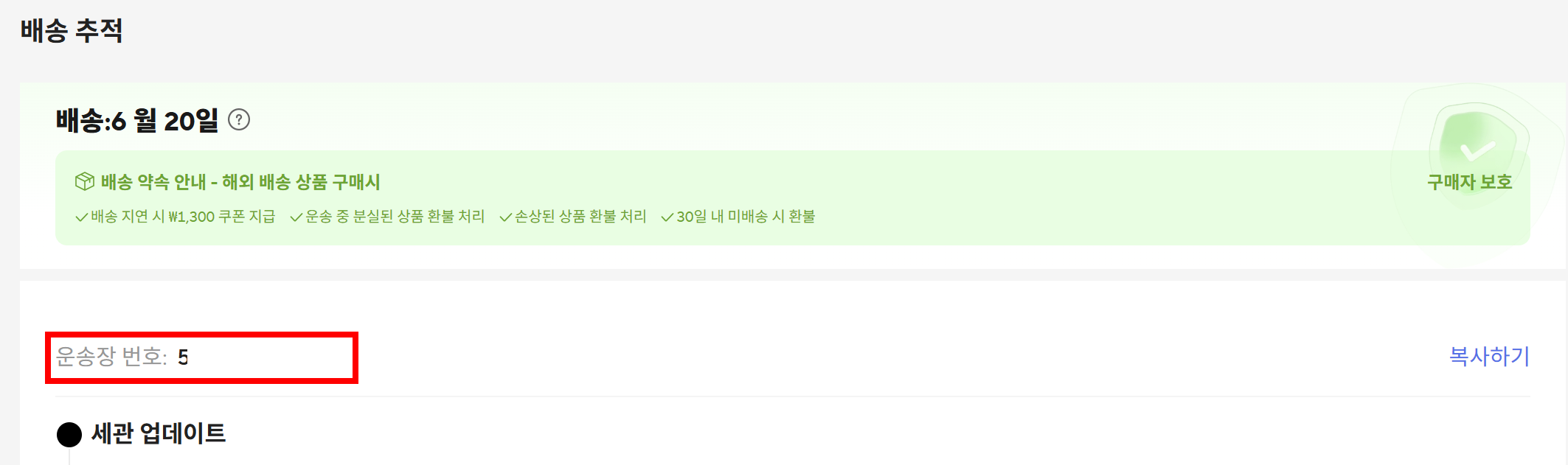운송장 번호 확인